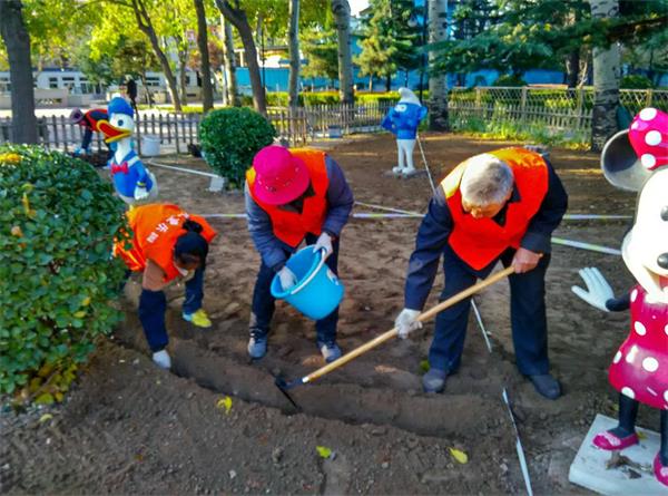 近日,随着气温的下降,又到了郁金香播种的季节,11月11日儿童乐园利用晴好天气加紧将35000株郁金香种球种入土壤里种植面积达500平米。 为了保证明年花期的效果,儿童乐园从11月初开始就陆续开展了郁金香种球播种的各项工作,对郁金香种球进行消毒处理,对栽植区域的土壤进行消毒、翻地、施肥等改良工作,种球种植后在局部增加了一道覆膜工序,降低冬季温差太大对郁金香生长造成的影响,确保郁金香花期开得饱满艳丽。